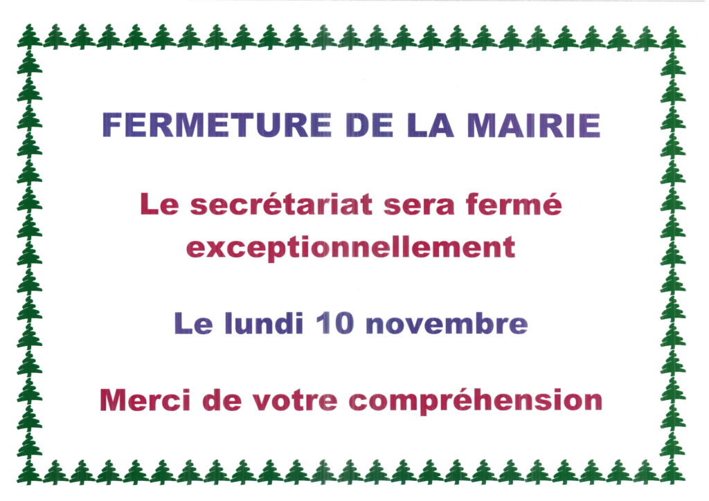 FERMETURE EXCEPTIONNELLE DE LA MAIRIE
